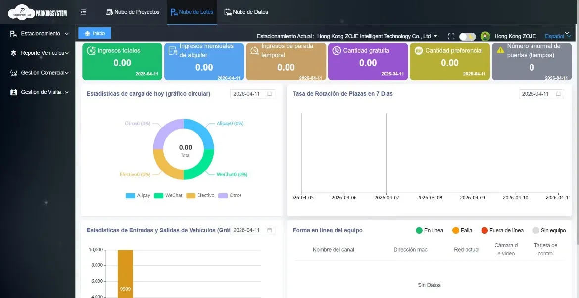 The status of all parking facility equipment (cameras, barrier gates), traffic flow logs, and transaction data are uploaded to a cloud-based platform in real-time.